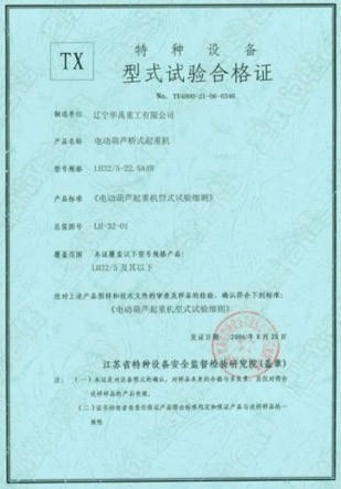 LDP电动单梁型式试验合格证